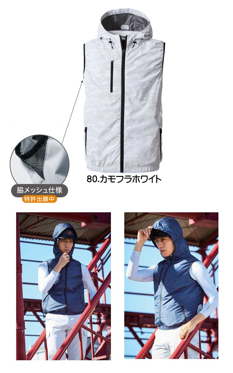 [2020年新型デバイス] 空調服 鳳凰 快適ウェア 村上被服フードベスト・白ファン・バッテリーセットV8309set