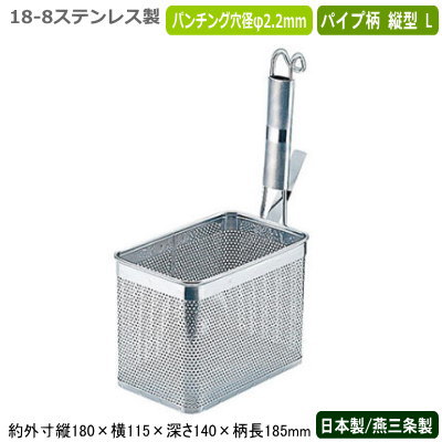 湯切り 麺茹で 冷凍麺 日本製 燕三条製18-8ステンレス製 パンチング 角てぼ パイプ柄 縦型 L業務用 網 アミ ザル ざる 麺 冷凍うどん 冷凍そば 茹でる ゆでる ボイル 湯通し 湯きり 水切り 洗いやすい 調理道具 調理器具 厨房器具 キッチン用品 飲食店 そば屋 UK