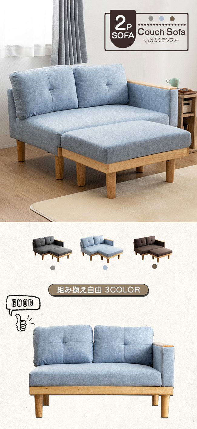 【買い回りがお得!お買い物マラソン】ソファ 2人掛け 1人掛け そふぁ 二人掛け 一人掛け 木製フレーム片肘 カウチソファ 送料無料ソファ 片肘カウチソファ 〔B〕