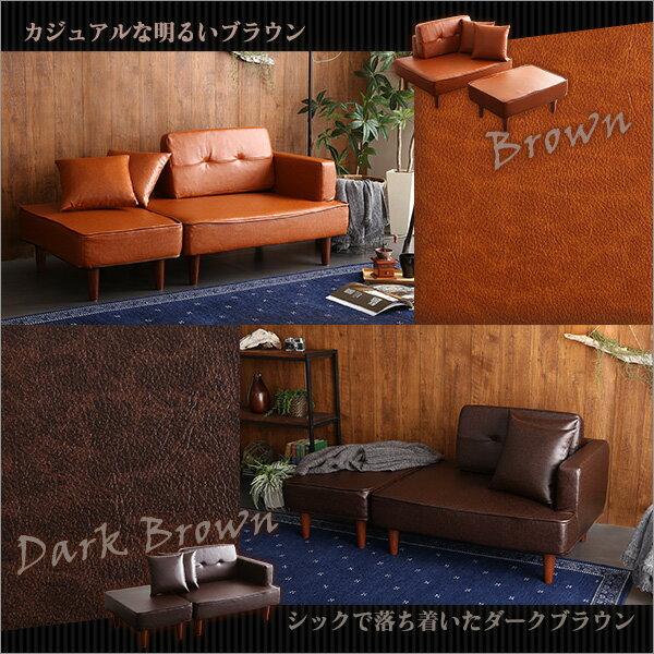4つのスタイルに変化 ヴィンテージ カウチソファー / 合皮 レザーソファー 二人掛け カウチソファ コンパクト 一人暮らし 片肘ソファー 片肘カウチソファ おしゃれ レトロ 安い オットマン付き 組み合わせ自由