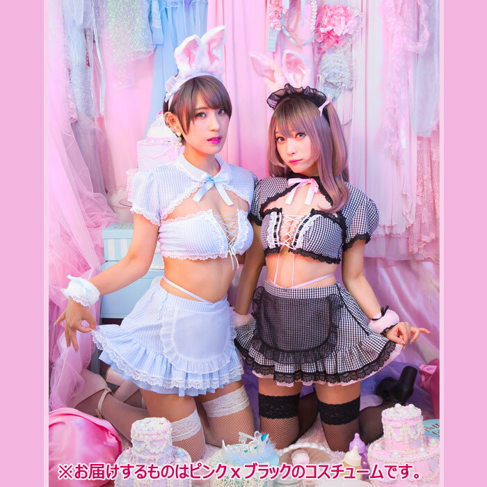 うさ耳とギンガムチェックがゆめかわいいメイド衣装。
