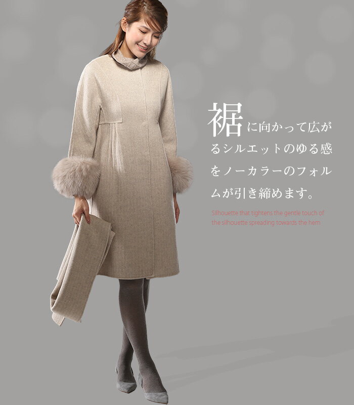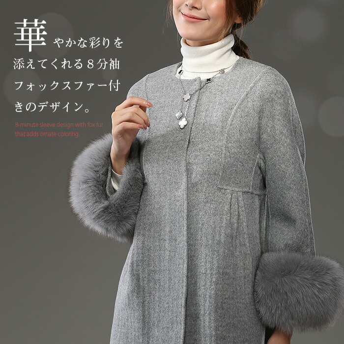 MAX60%OFF!! 返品不可アイテム ウール アルパカ ウールコート レディース Wフェイス ダブルフェイス 毛皮 アウター コート 大きいサイズ ロング ノーカラー フォックス【新作】華やかな彩りを添えてくれるフォックスファー付きウールコート[NO.11-72-96](7726)